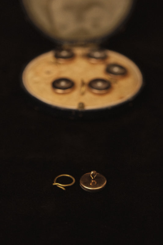 Antique Blue Glass Tuxedo Cufflink & Stud Set in Original Box