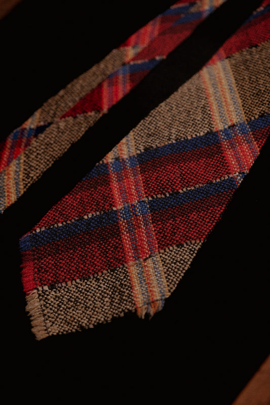 Red & White Blanket Check Native American Tie By Sandia Weavers