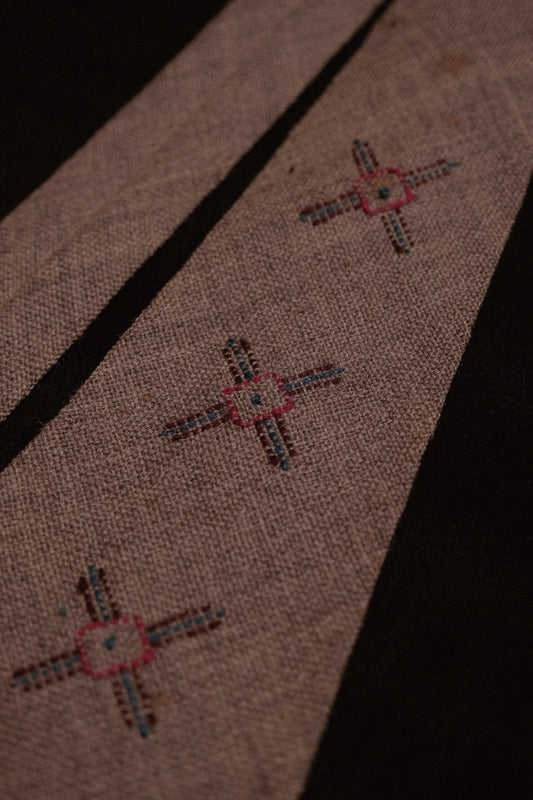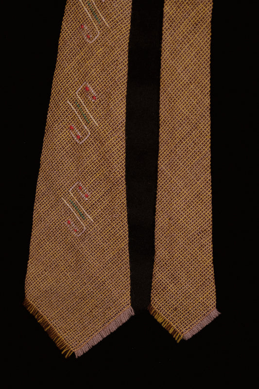 1930s Mustard Native American Tie With Embroidery By Sandia Weavers