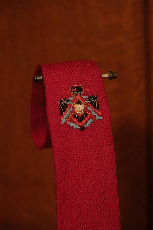 Red Native American Tie With Embroidery By The Chief Weavers Ltd
