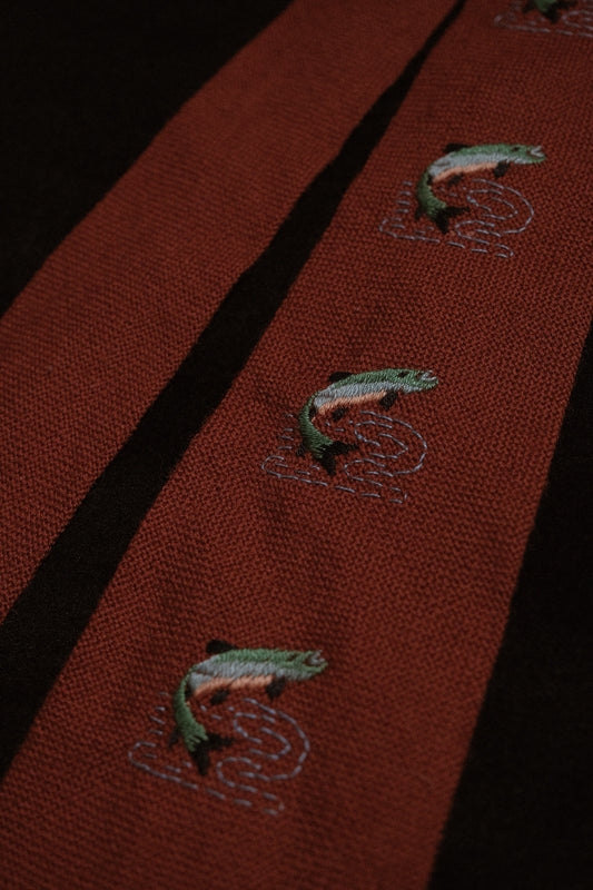 Dark Rust Native American Tie With Jumping Trout Embroidery By “KATCHINA” Weavers New Mexico