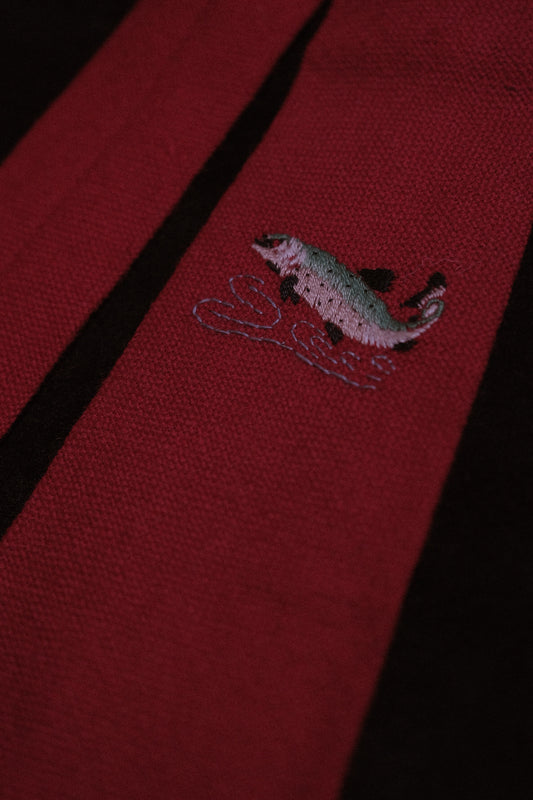 Red Native American Tie With Jumping Trout Embroidery By Tewa Weavers