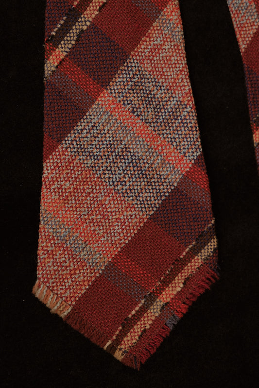 Red,Blue and Cream Checked Native American Tie By Baures Weavers, New Mexico