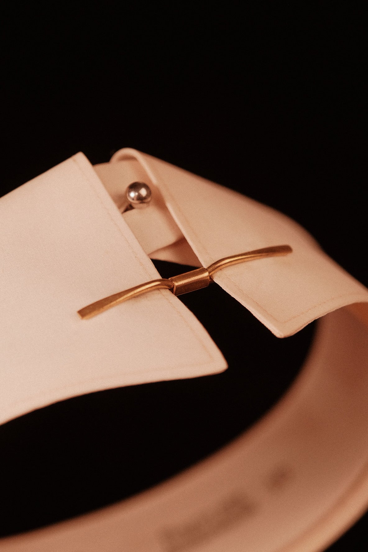 These bars embody the understated design language of the era, with smooth, flattened faces that catch the light subtly without excessive ornament. Worn beneath the tie, they draw the collar points inward and lift the knot to create the sharp, sculpted presentation associated with proper 1920s dress.